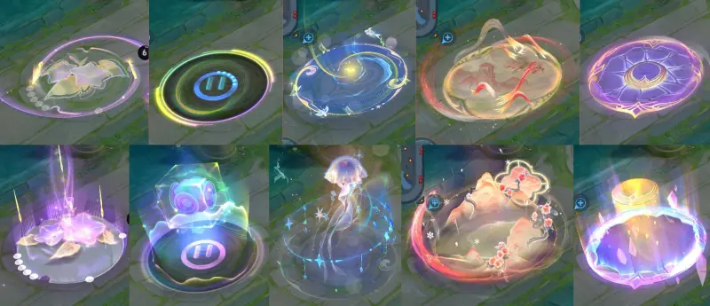 局内的特效各有不同,但我是比较喜欢长夜焕生,护盾上一只自由游动的水母会给人一种非常精致的感受,同时我也喜欢映山客身后的两个飘带。
