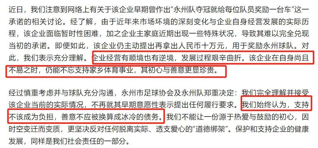 最让人感动的是永州队和足协的态度,他们没有追责,而是发了一份极具温情的声明: